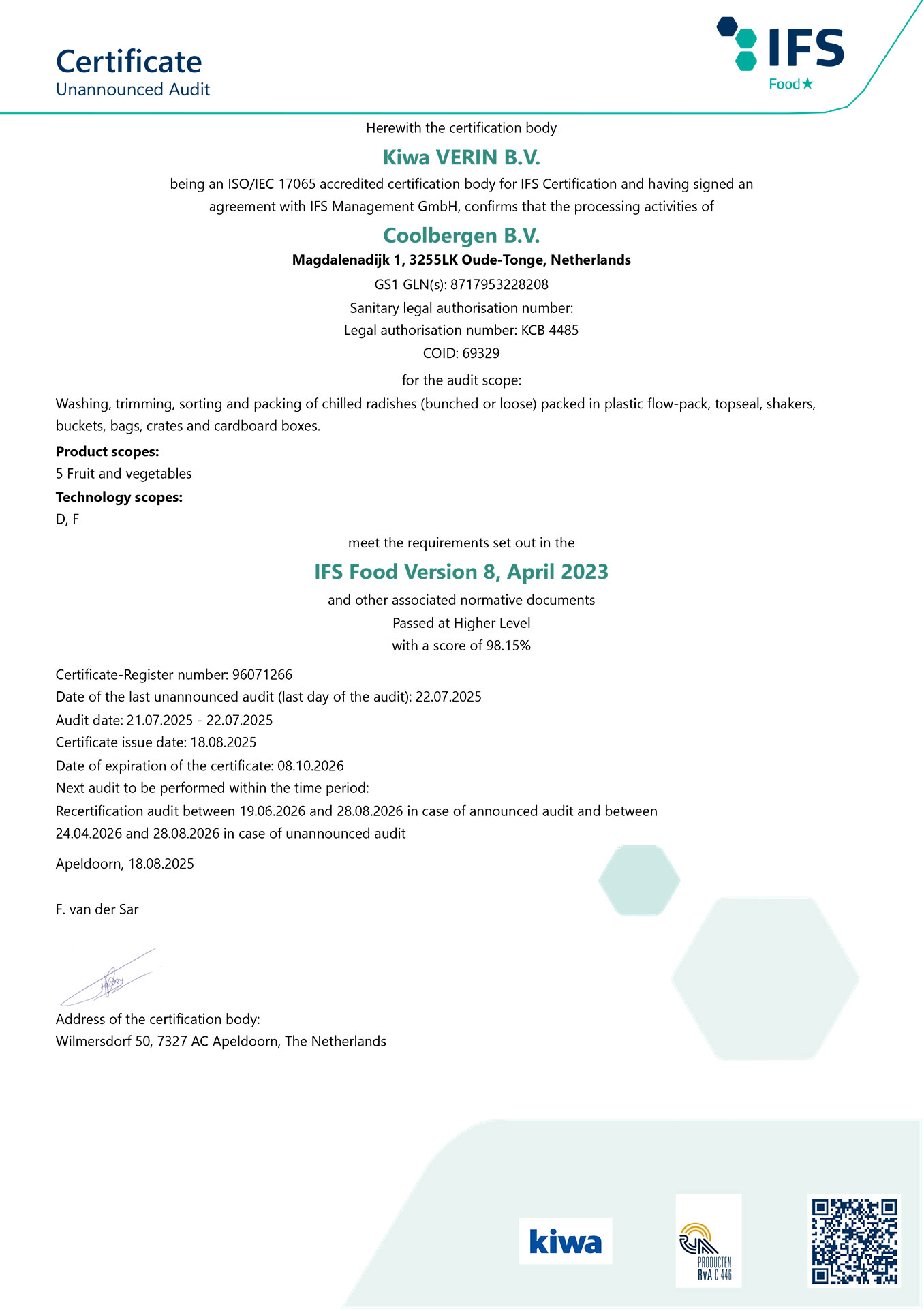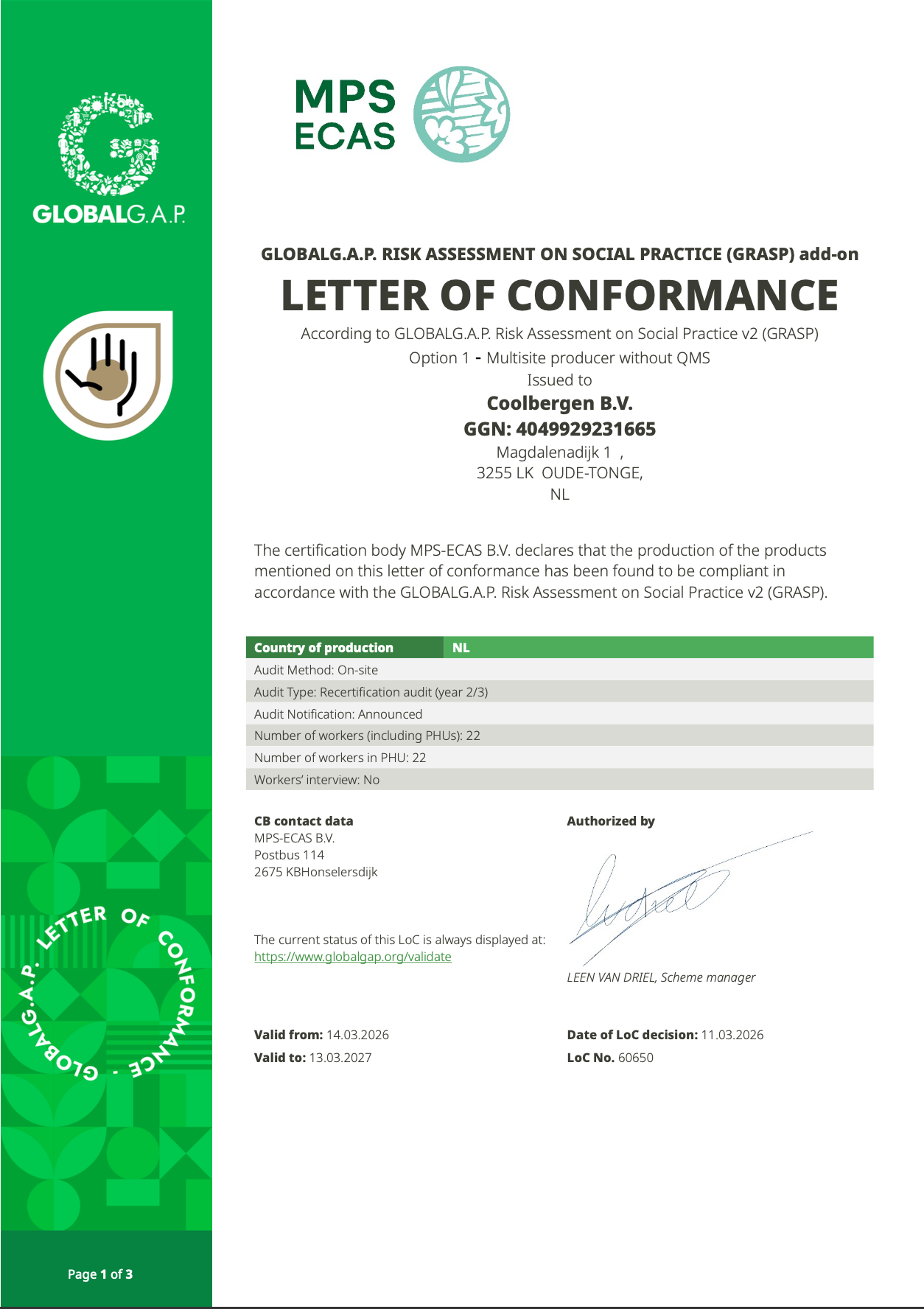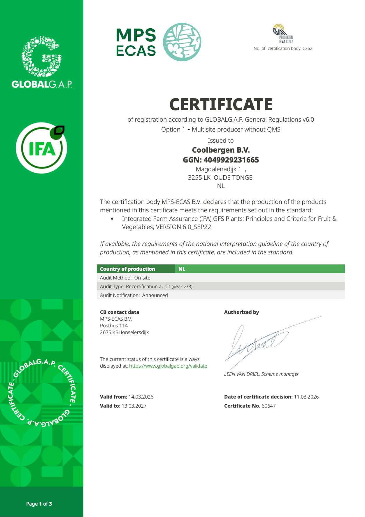 Global Gap is an international certification that ensures food is produced in a responsible and sustainable way.