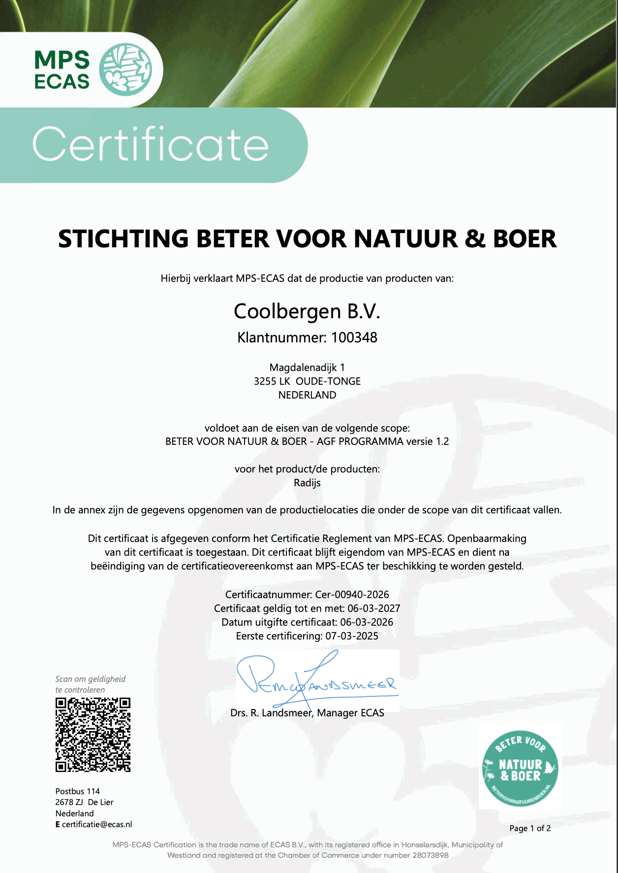 Beter voor Natuur & Boer is a certification that supports farmers and growers in reducing their ecological impact and enhancing biodiversity on their farms.